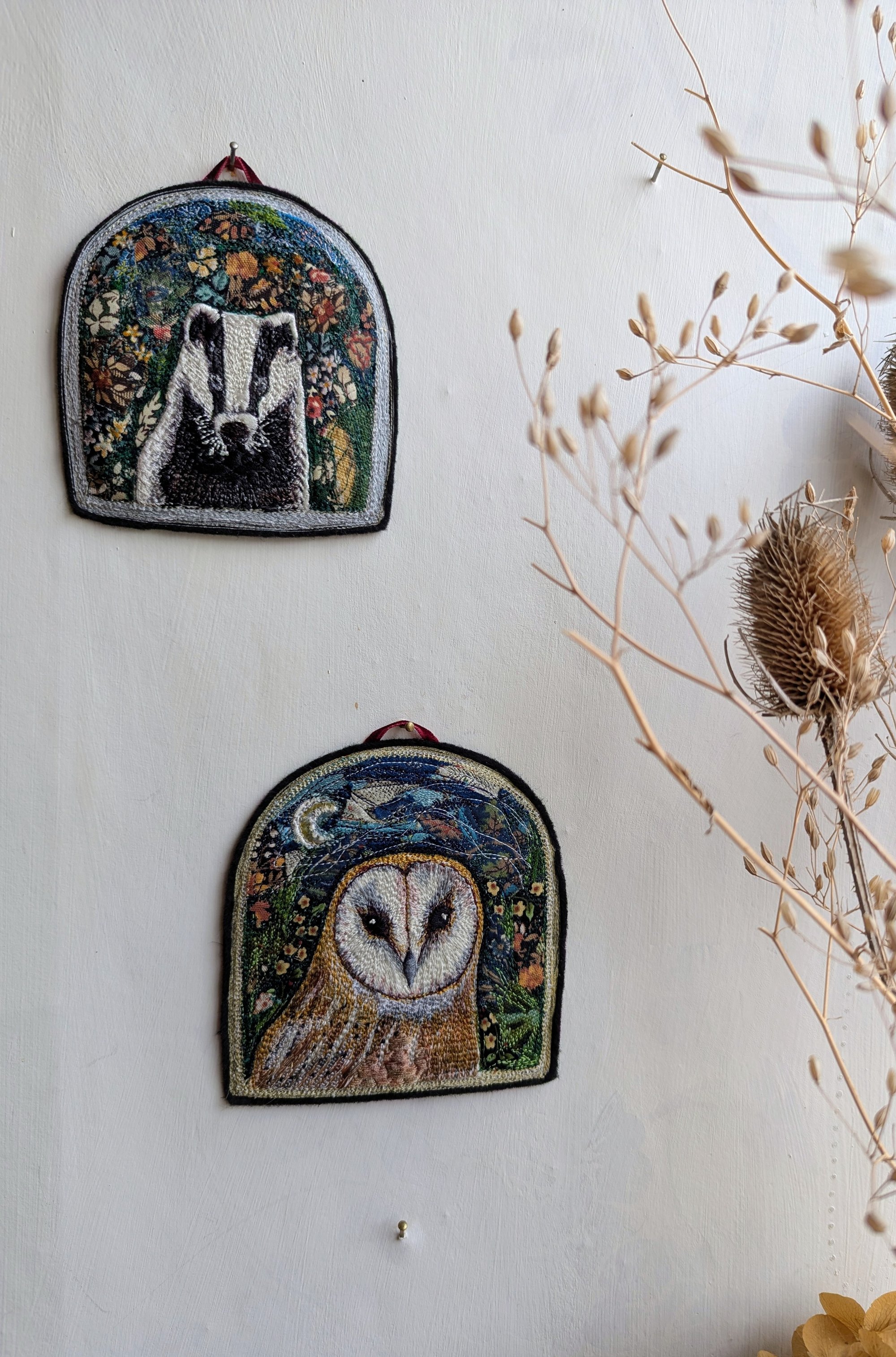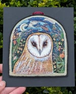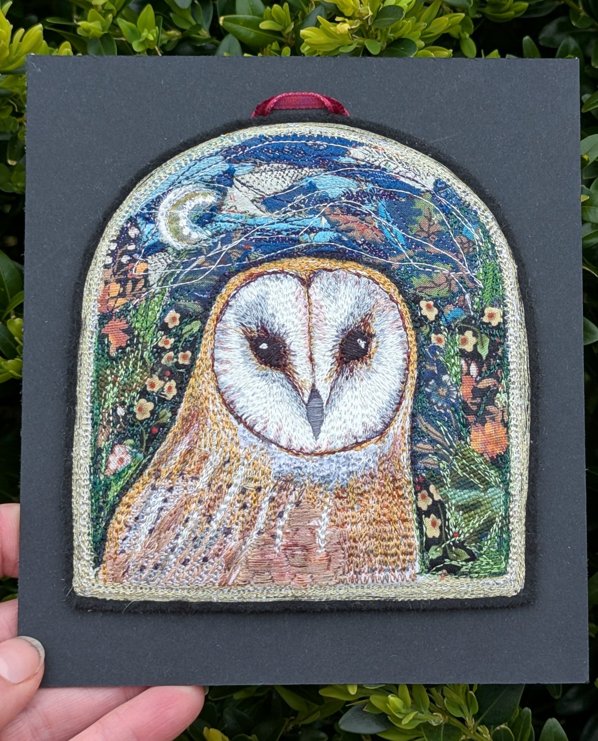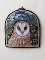Barn Owl Window miniature embroidery hanging